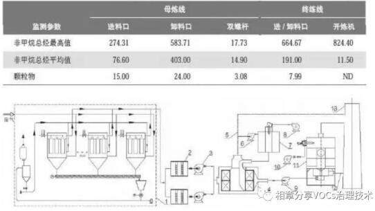 針對(duì)煉膠車(chē)間產(chǎn)生的廢氣特點(diǎn),采取“預(yù)處理+濃縮轉(zhuǎn)輪+RTO”的工藝方法進(jìn)行處理,處理后的廢氣排放指標(biāo)遠(yuǎn)遠(yuǎn)低于國(guó)家標(biāo)準(zhǔn),可實(shí)現(xiàn)超低排放。